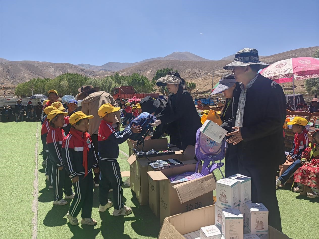 易明醫(yī)藥黨支部代表與藥監(jiān)局駐村工作隊、謝通門縣卡嘎鎮(zhèn)黨委共同參與了庫熱孜村的六一兒童節(jié)文藝表演活動?;顒又?,易明醫(yī)藥向村小學(xué)、幼兒園的兒童們發(fā)放了書包135個、文具盒115個、水彩筆40盒、水杯140個、安全小黃帽120頂、藏文鋼筆160支等共計價值約2萬元的節(jié)日慰問品。